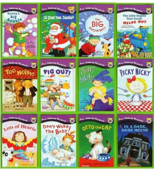Bộ sách truyện “All Aboard Reading” (ebook+audio) gồm 22 quyển là 22 câu chuyện khác nhau, trong đó có một số từ ngữ được giấu đi và được thay thế bằng hình ảnh để bé tự suy nghĩ, phán đoán và đưa ra đáp án đúng.